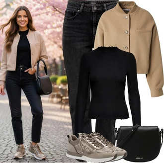 /Push up Džín/Zimní bunda/Kožené Boty Pieces "Jarní Outfit"