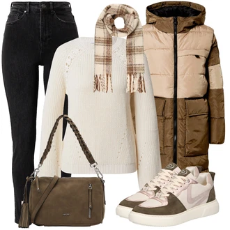 Outfit s Hnědá Šál VERO MODA "Trendový zimní vzhled"