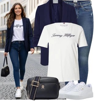 Outfit s Černá/Tmavě modrá Košile Carmen/Tričko s vodopádovým výstřihem/Krátký top/Zavinovací Tričko/Košilový top/Tričko s krátkým rukávem/Tričko/Jednoduchý top/Tričko nadměrné velikosti Only "Jarní Outfit"